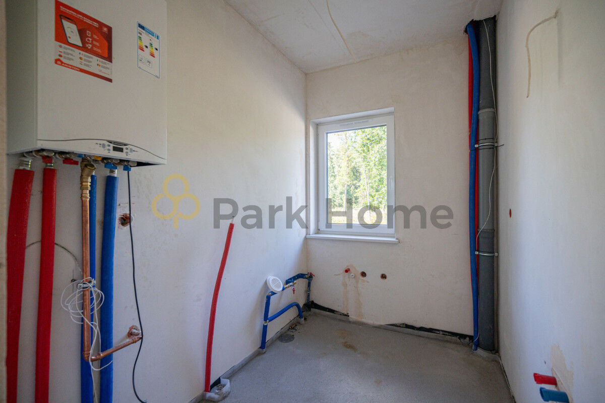 Dom ogrzewany jest gazowym piecem dwufunkcyjnym, a w całym budynku zastosowano ogrzewanie podłogowe. W salonie przygotowano miejsce pod montaż kominka. Woda doprowadzona jest z sieci miejskiej, a nieczystości odprowadzane są do szamba.